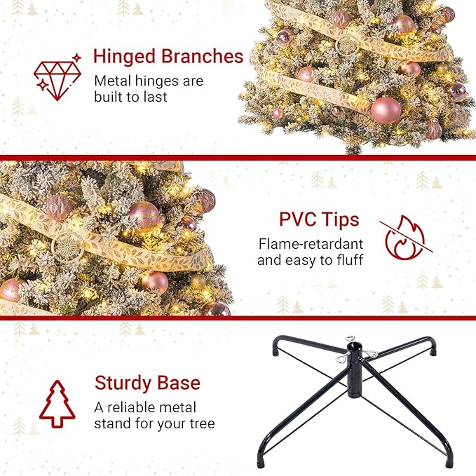 - Easy 3-Step Assembly & Fluffing: Hinged construction simplifies the setup process—simply connect the base, attach the sections, then fluff the branches for a quick, effortless decorating experience.