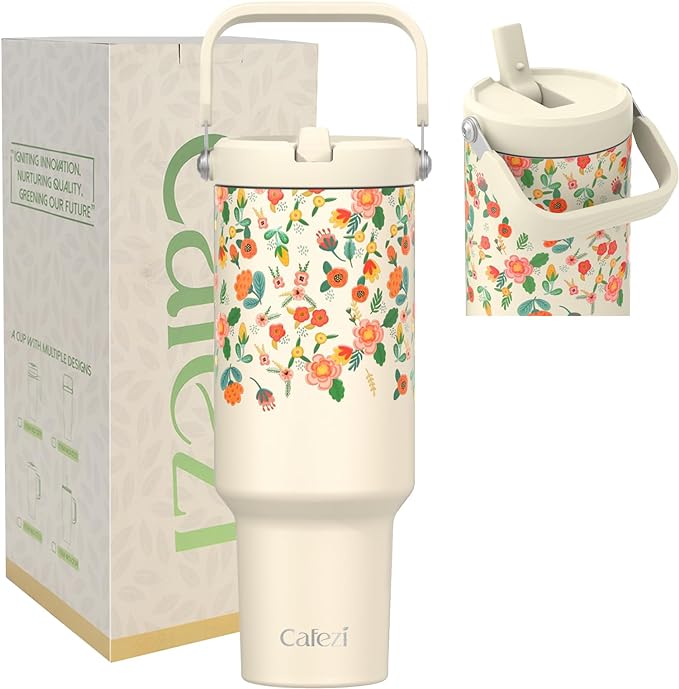 40 oz Tumbler with Lid and Straw, Stainless Steel Vacuum Insulated Tumblers with Flip Straw and Top Handle, Reusable Insulated Water Bottle for Home, Office, Leakproof, Fit in Cup Holder